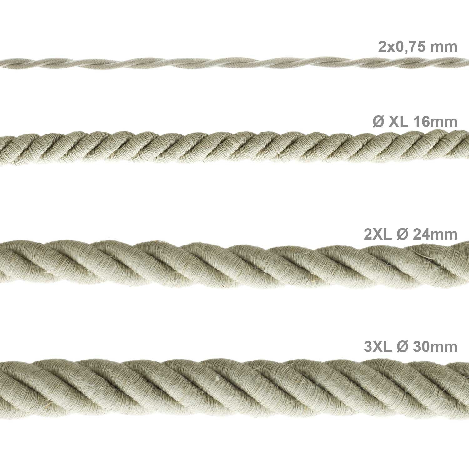 XL electrical cable, electrical wire 3x0.75. Natural linen cover. Diameter 16 mm.