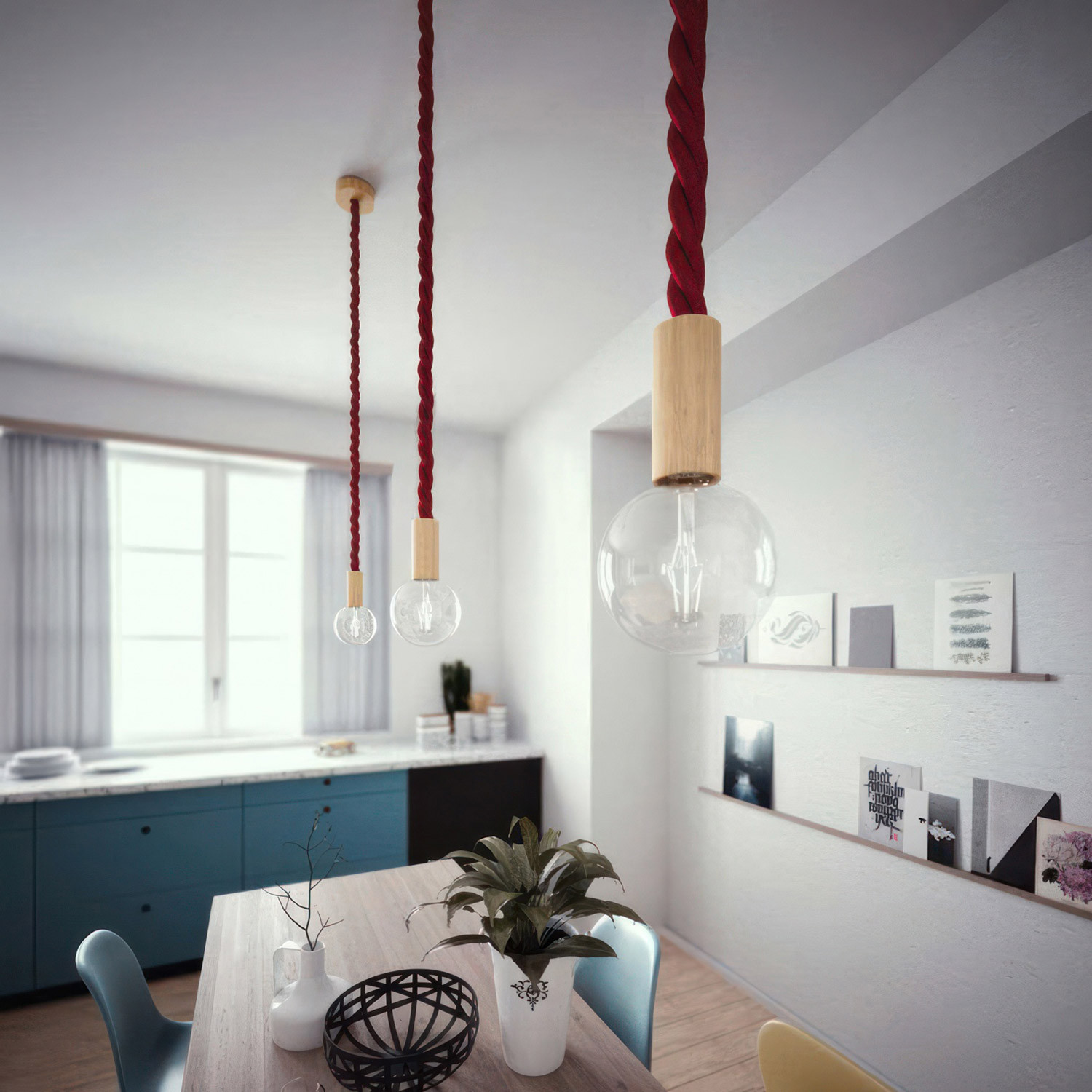 3XL electrical cable, electrical wire 3x0.75. Glossy dark burgundy fabric cover. Diameter 30 mm.