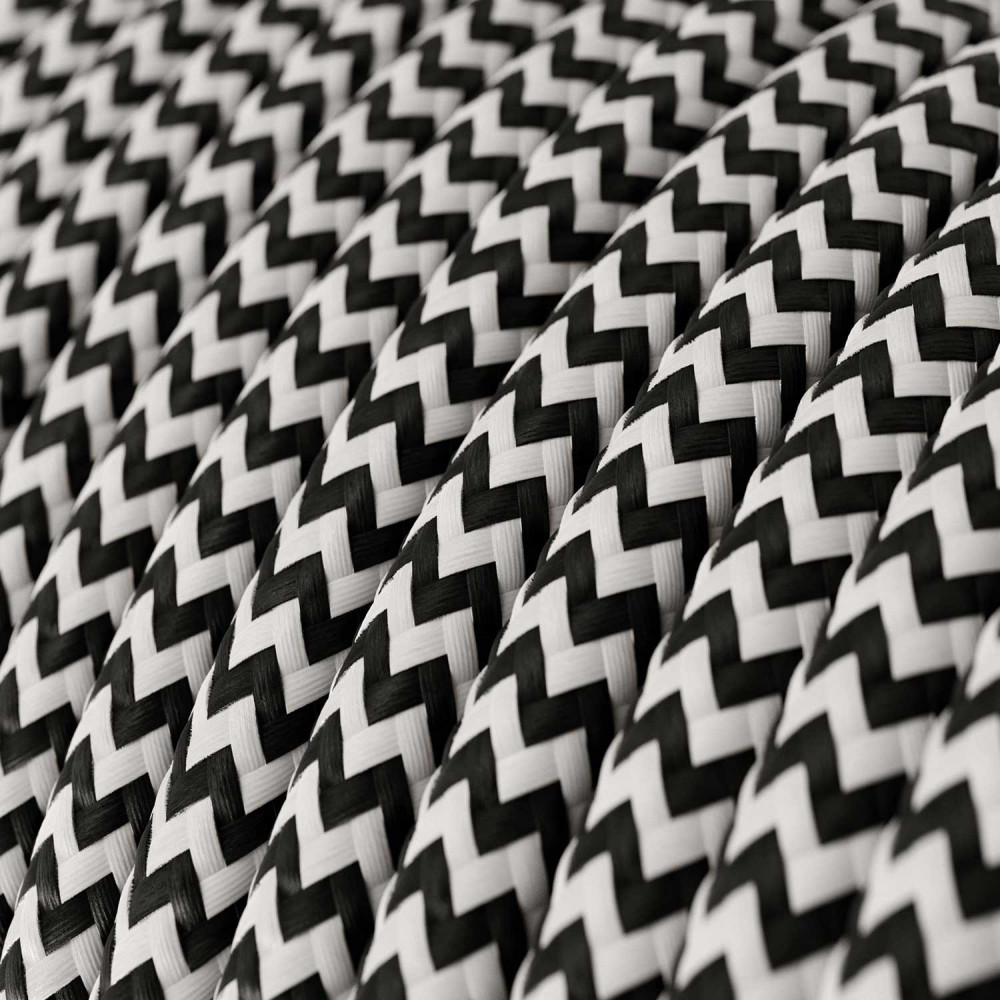The round RZ04 ZigZag with synthetic silk fabric and white and black LAN-RJ45 connectors adds a touch of elegance and color to your home or office!