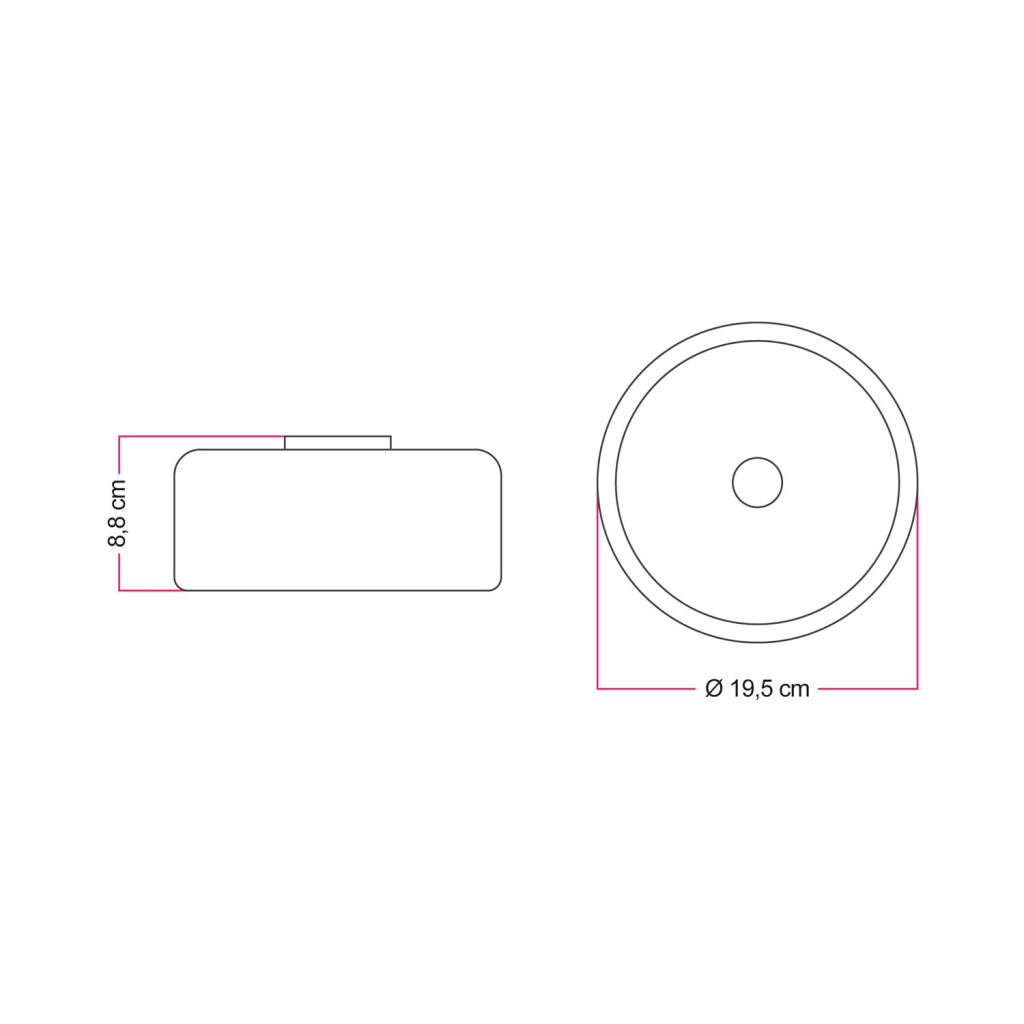 Dimensions: Diameter: 195 mm Height: 83 mm