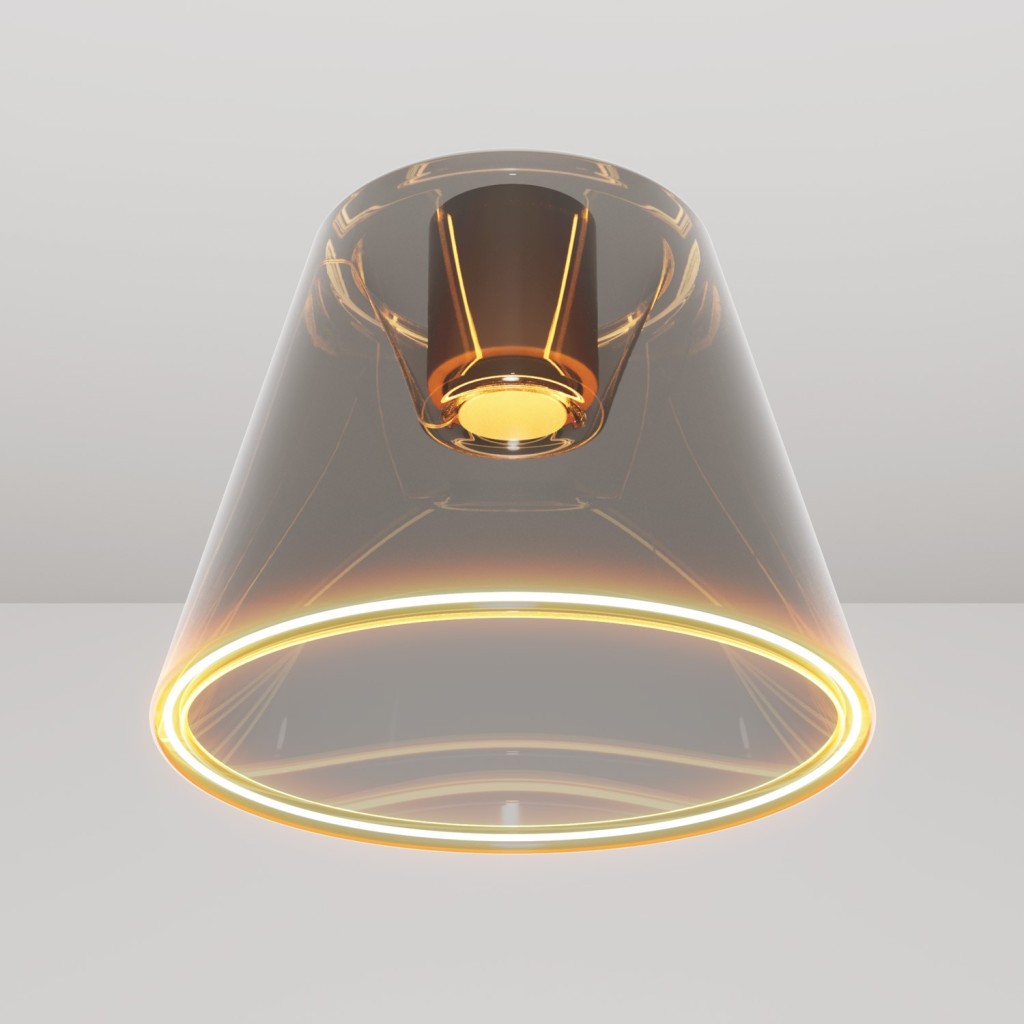 Designer ceiling lamp with smoky, cone-shaped Ghost bulb