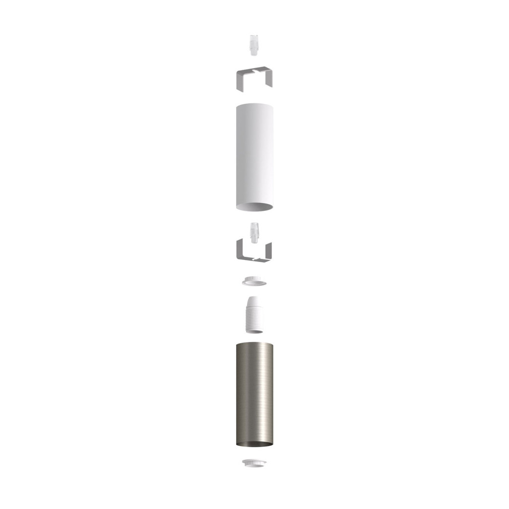 Technical data: Double Tub-E14 lampshade Diameter: 60 mm Height: 306 mm (153 mm each) Inner diameter of hole: 56 mm 1 double lamp holder ring with E14 connector