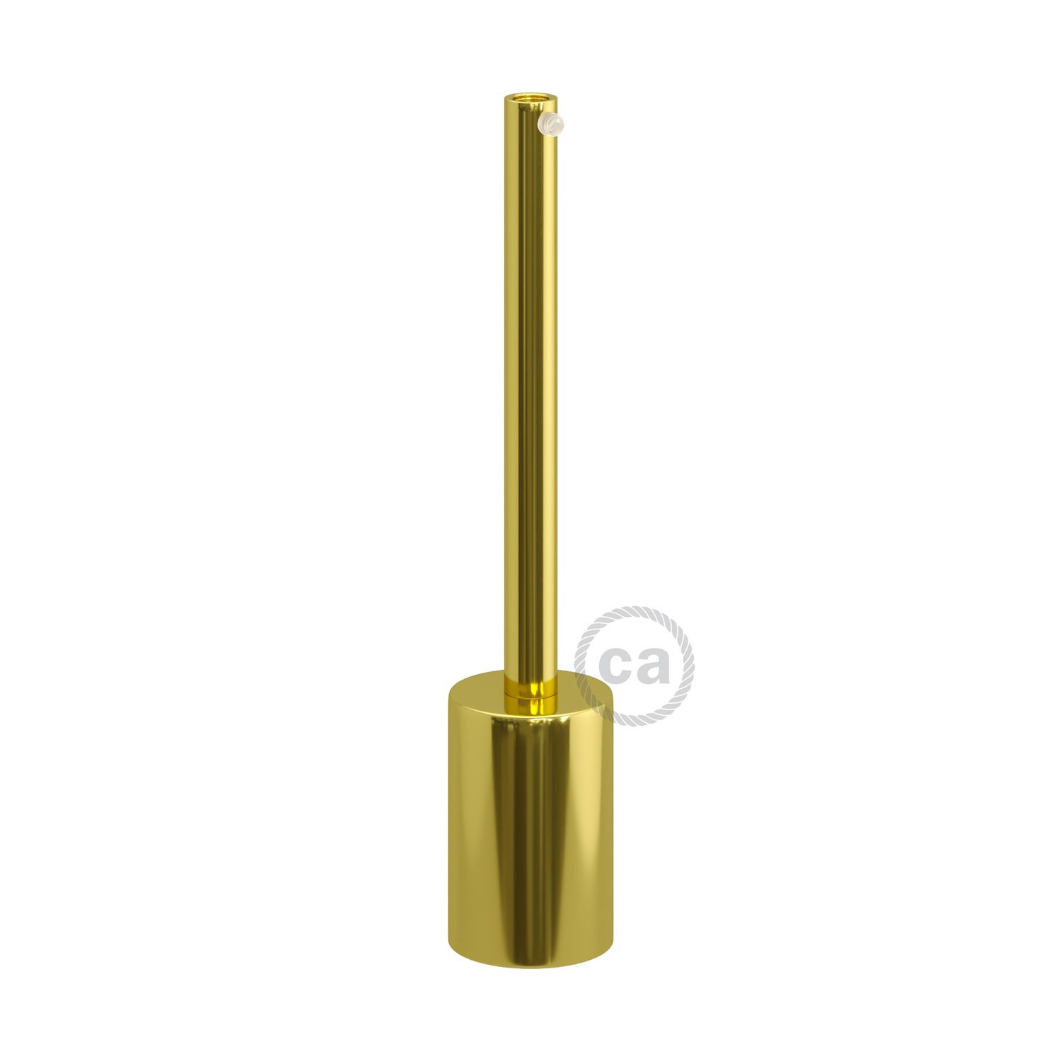 Cylindrical lamp holder set consisting of an E27 lamp holder, a 15 cm cylindrical metal cable clamp and a ceiling rose, which can be used with the textile cable of your choice.