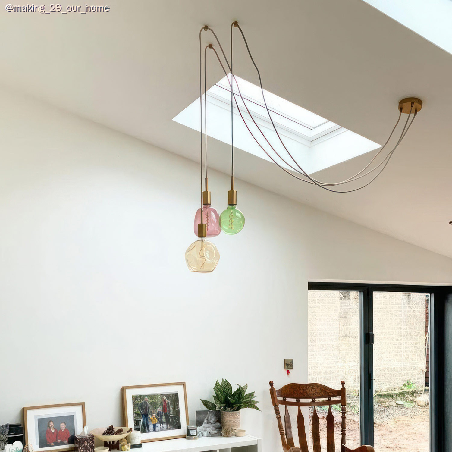 Cylindrical lamp holder set consisting of an E27 lamp holder and a 7 cm cylindrical metal cable clamp, ideal for use with your favorite textile cable and ceiling rose (sold separately).