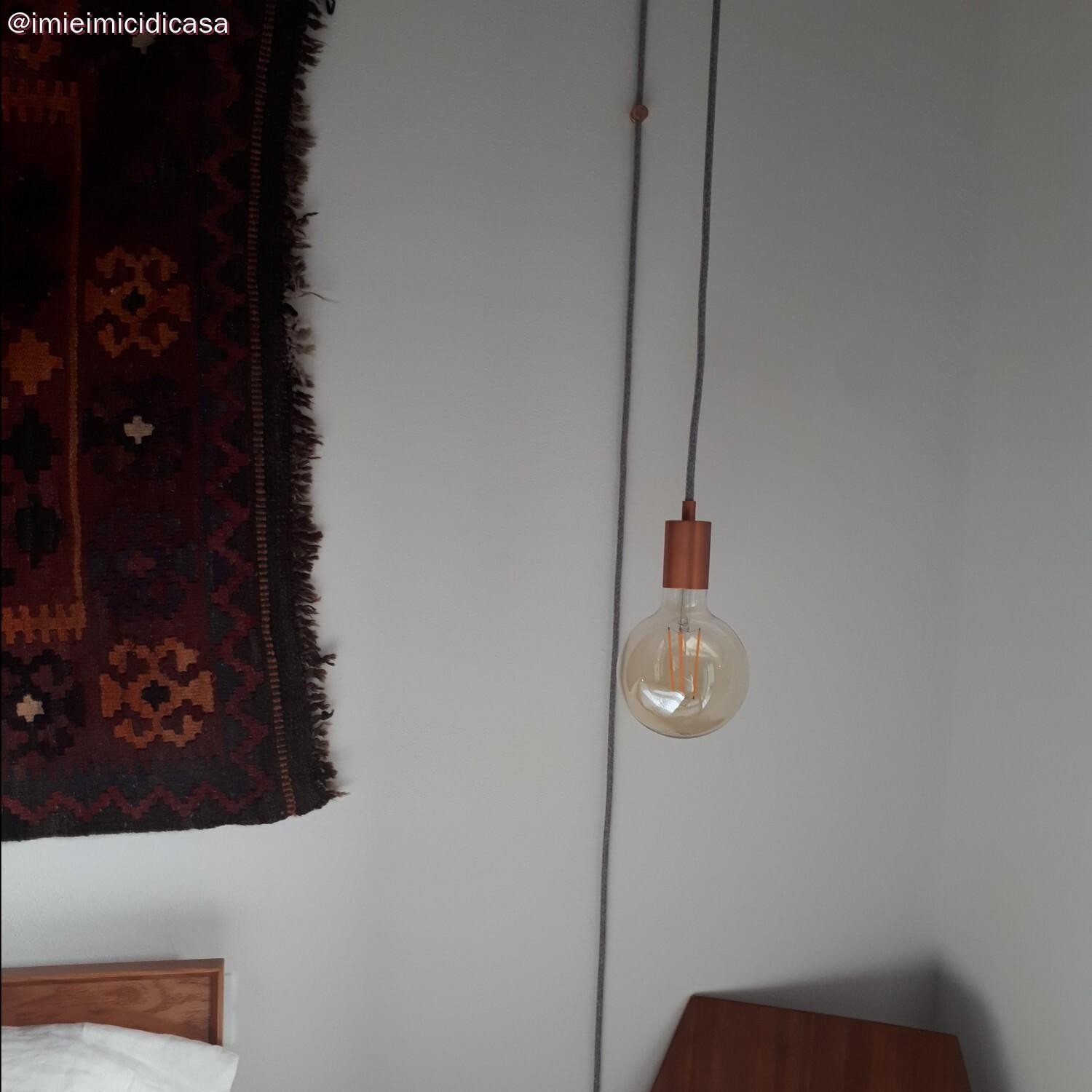 Cylindrical lamp holder set consisting of an E27 lamp holder and a cylindrical metal cable clamp, ideal for use with your favorite textile cable and ceiling rose (sold separately).