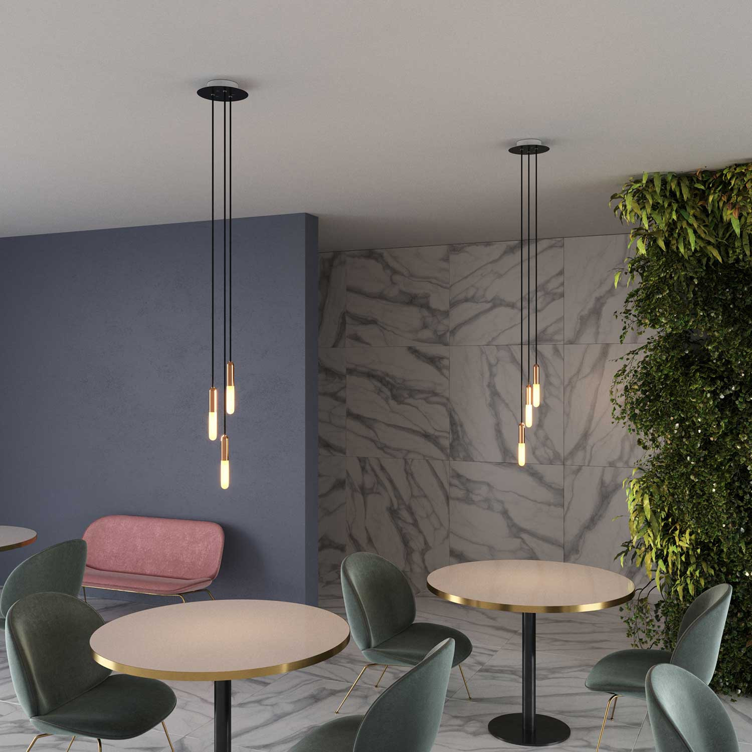 The lamp holder set consists of a metal cap and an E14 lamp holder with a heat-shrinkable plastic cable clamp. Ideal for creating a pendant lamp when combined with your favorite (not included) fabric cable and ceiling rose.