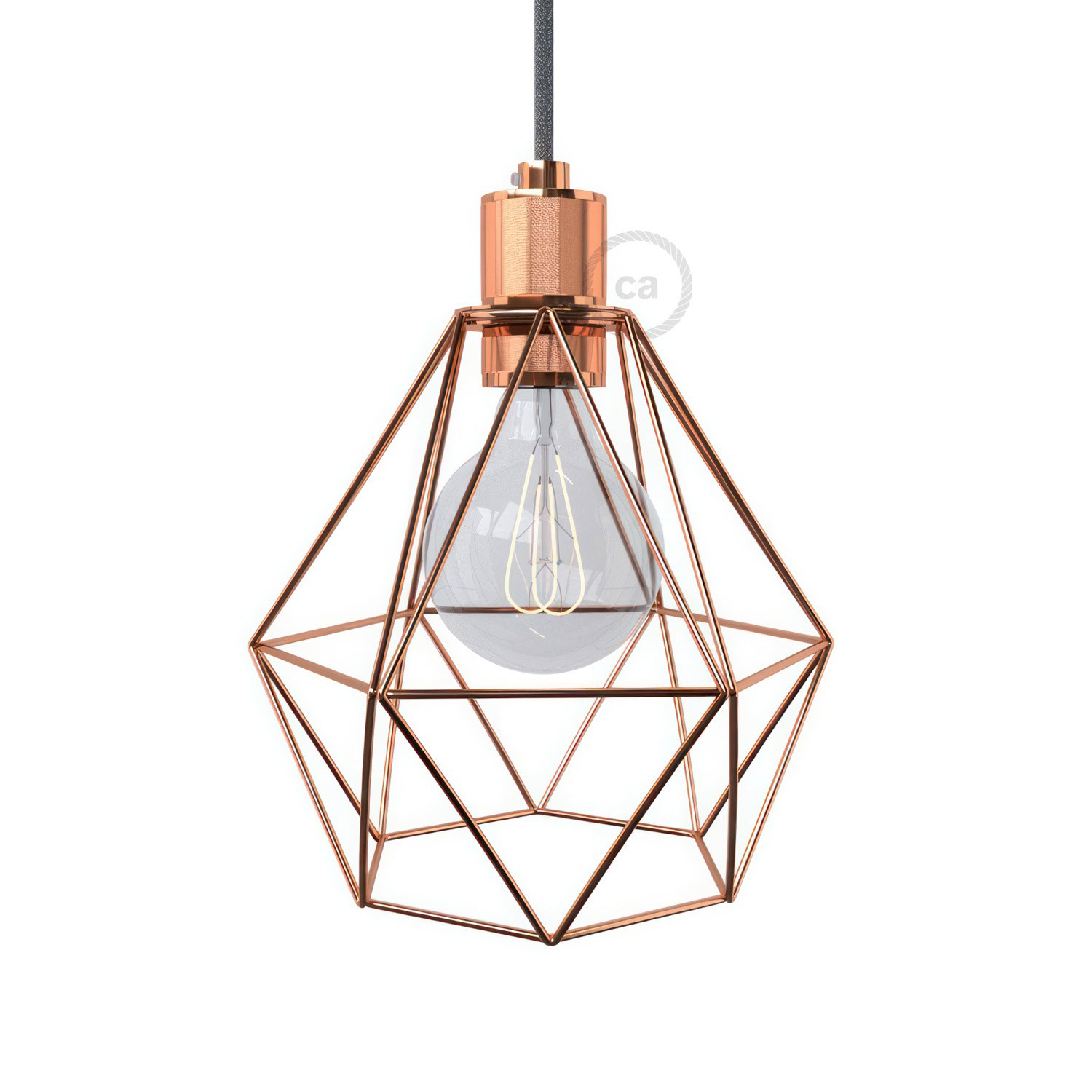 1 engraved aluminum body, sleeve for E27 lampshades and integrated cable clamp.