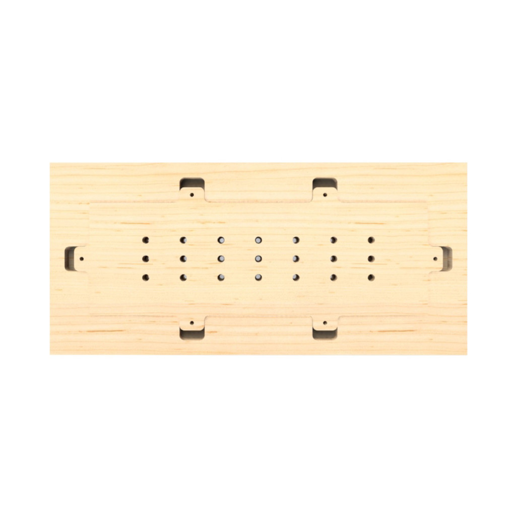 Wooden template for drilling rectangular holes in Rose-One cover plates