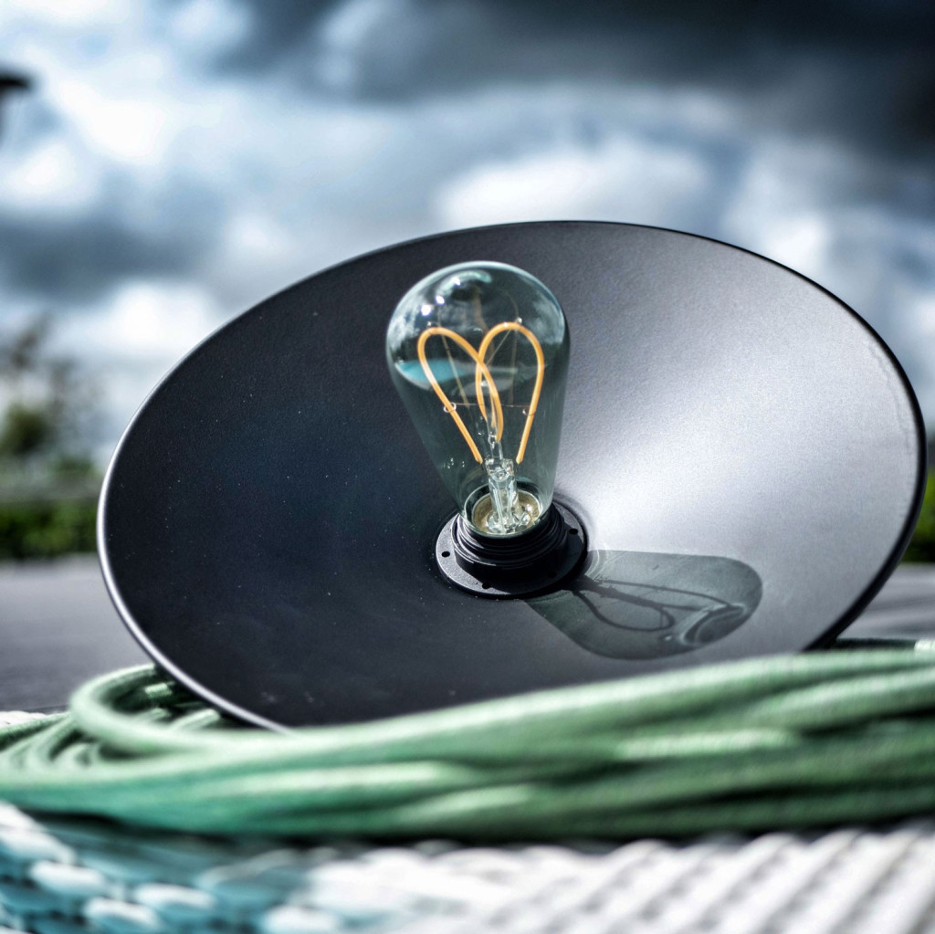 Ideal for creating water- and rain-resistant outdoor pendant lights when purchased (not included) with the textile cable and ceiling rose from the same series.