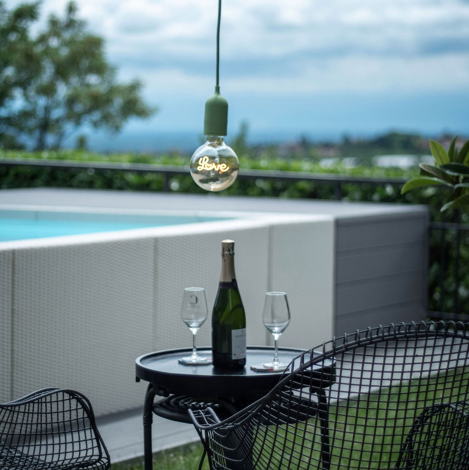 Ideal for creating water- and rain-resistant outdoor pendant lights when purchased (not included) with the textile cable and ceiling rose from the same series.