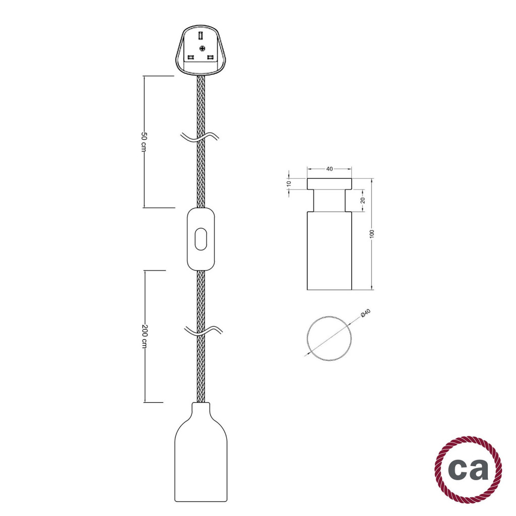SnakeBis cable bundle with wooden lamp holder and electrical cable: Maximum power: 57 W IMQ-HAR certification. CEI 20-20 CEI 20-35 RoHS compliant.
