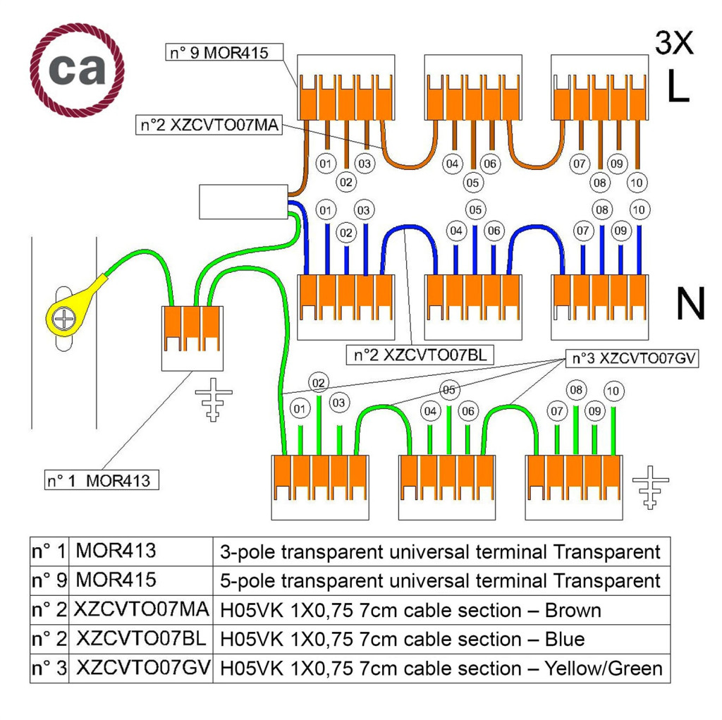 WAGO connector set, compatible with 3x cables, for 10-hole ceiling rosette