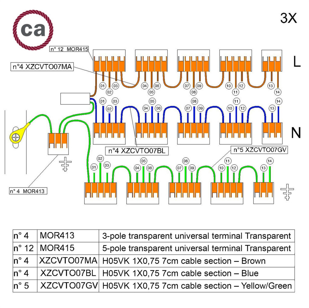 Nominal cross-section: 3 x 0.2 - 4 mm² for rigid or flexible cables
