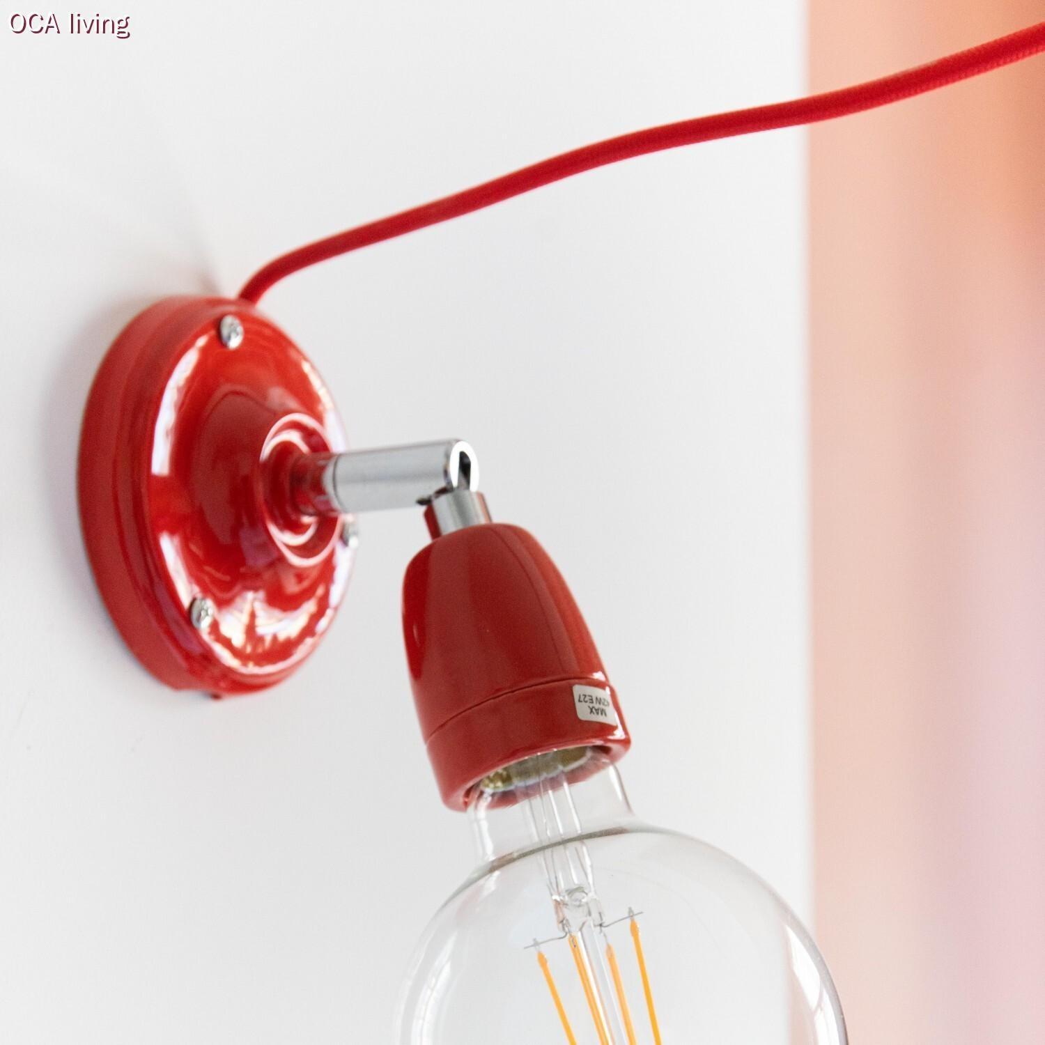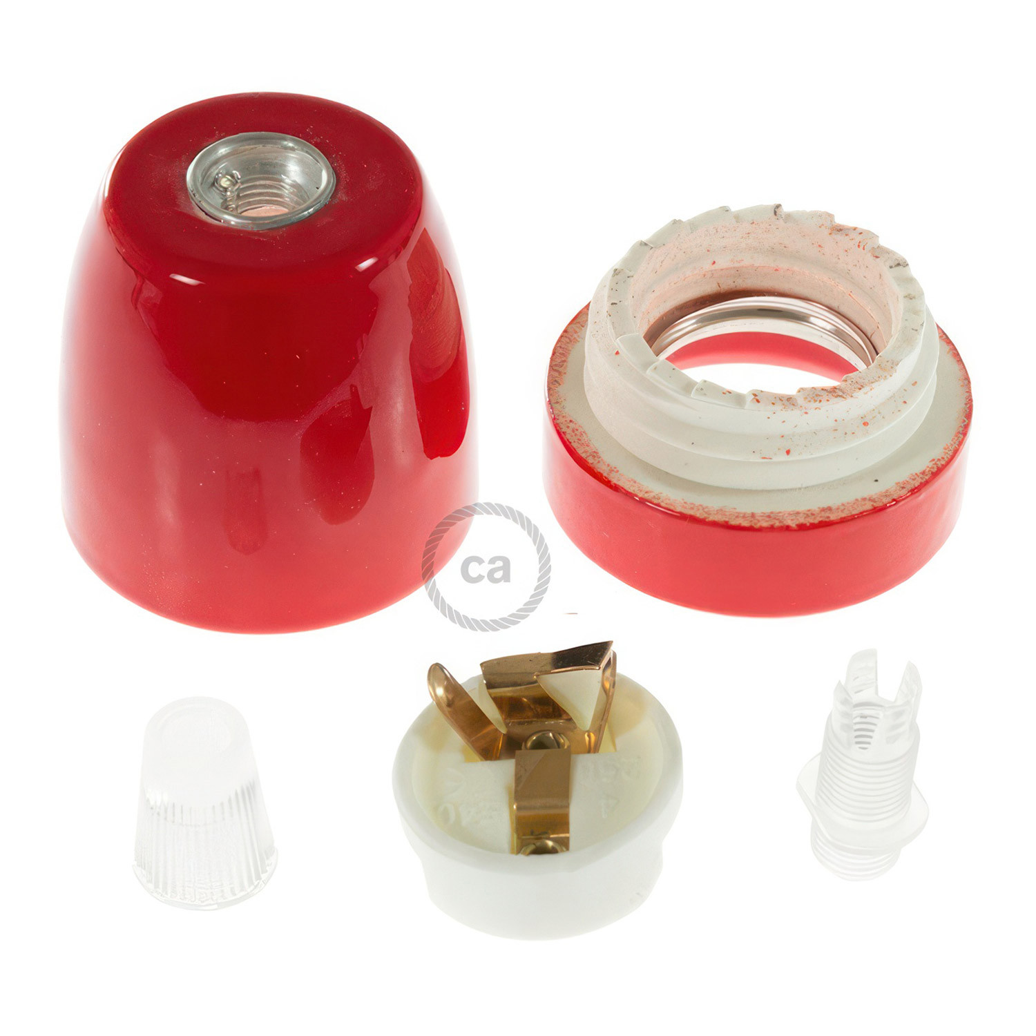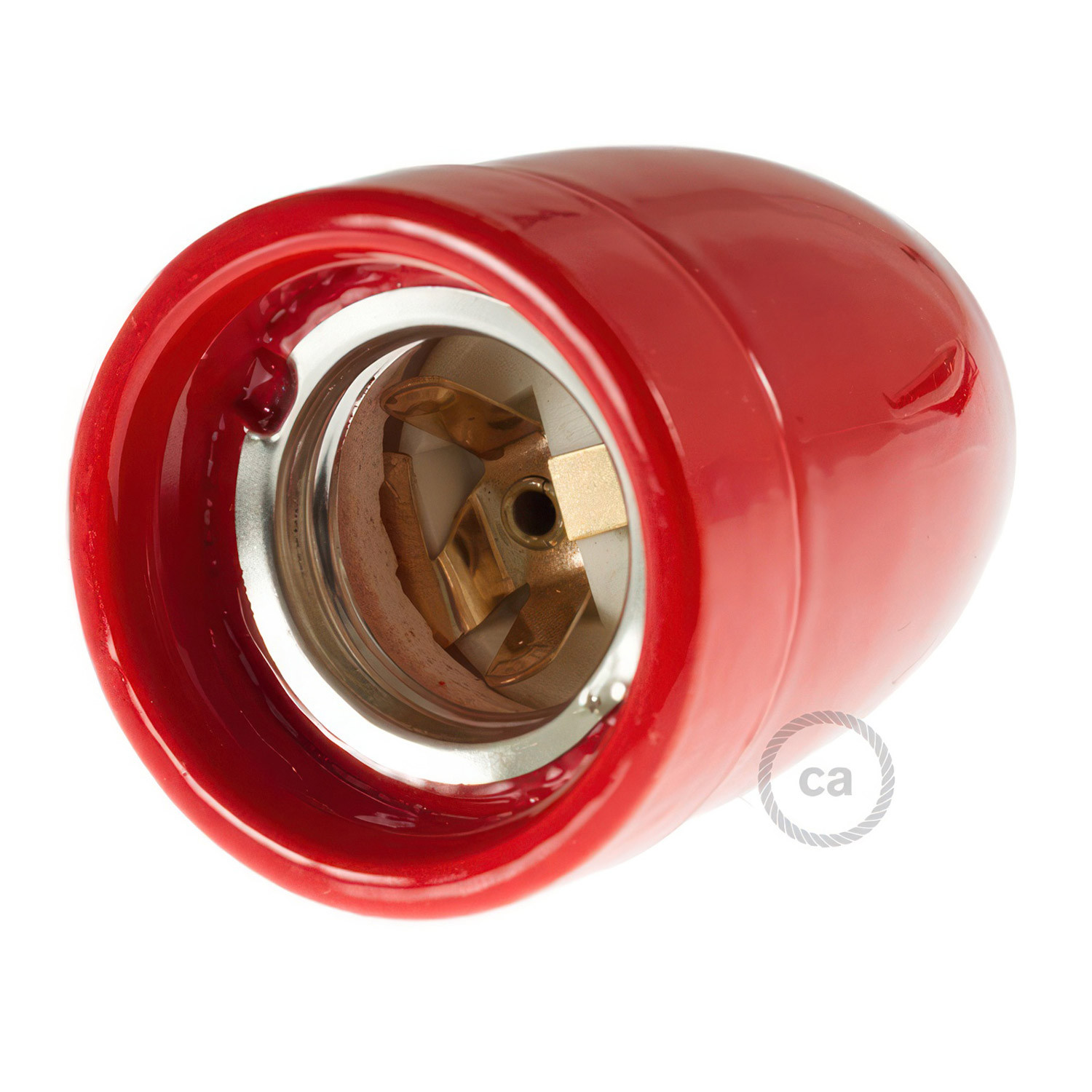Porcelain E27 lamp holder with cable clamp.