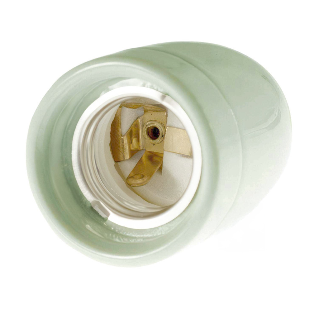 Porcelain E27 lamp holder with cable clamp.