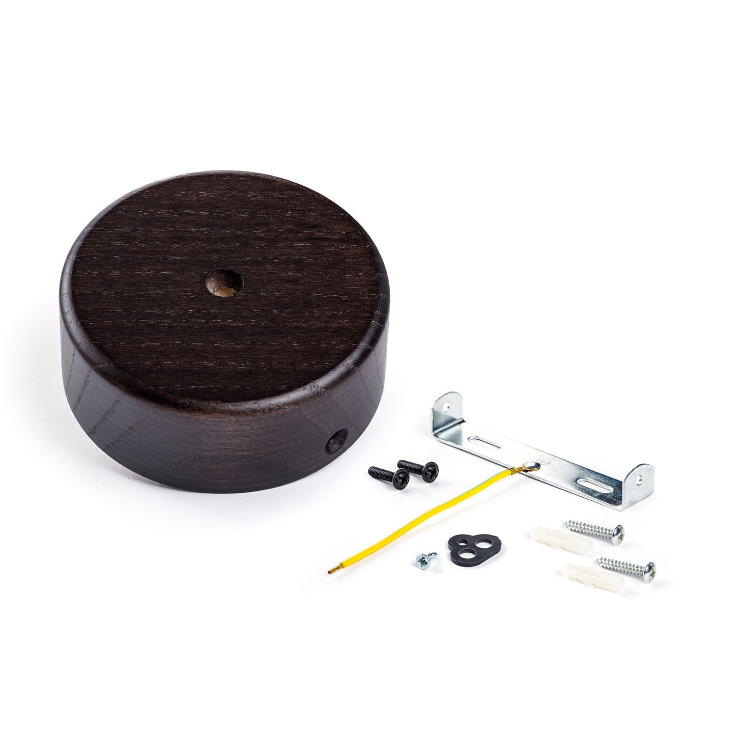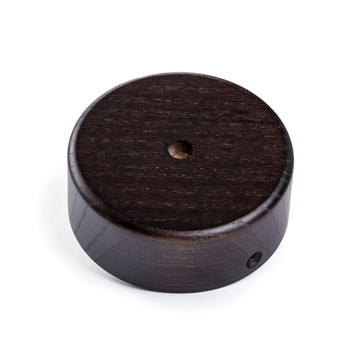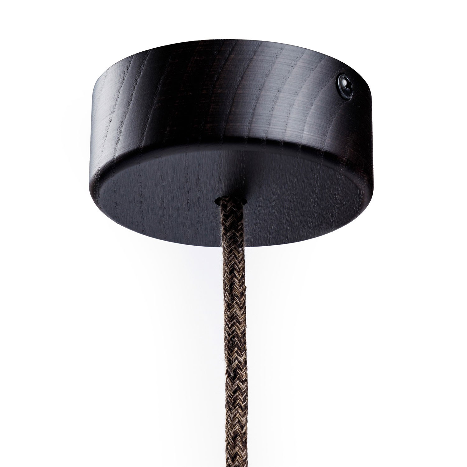 Mini wooden ceiling rosette for textile cables.
