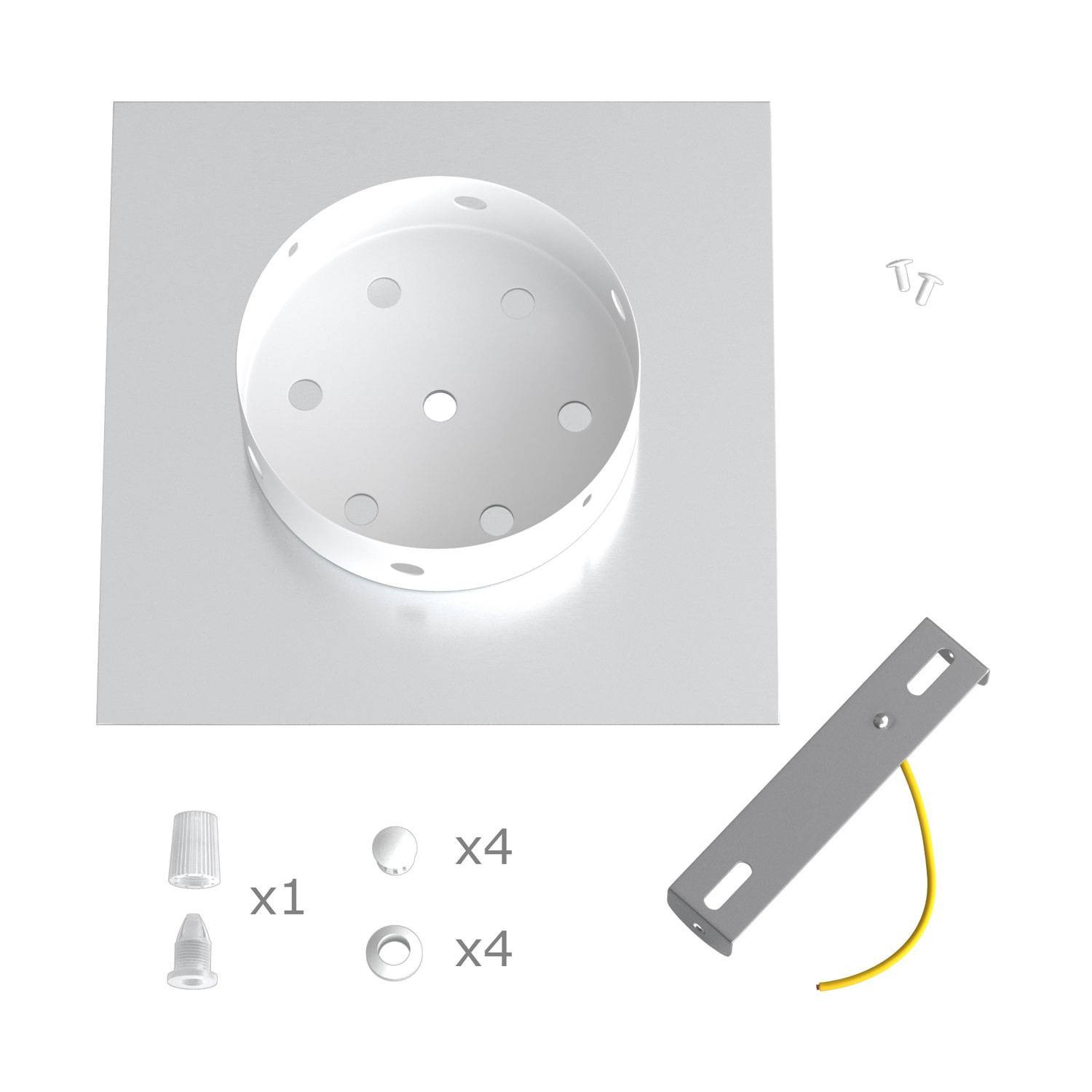 Square rosette – one hole and four side holes, ceiling rosette set, 200 mm
