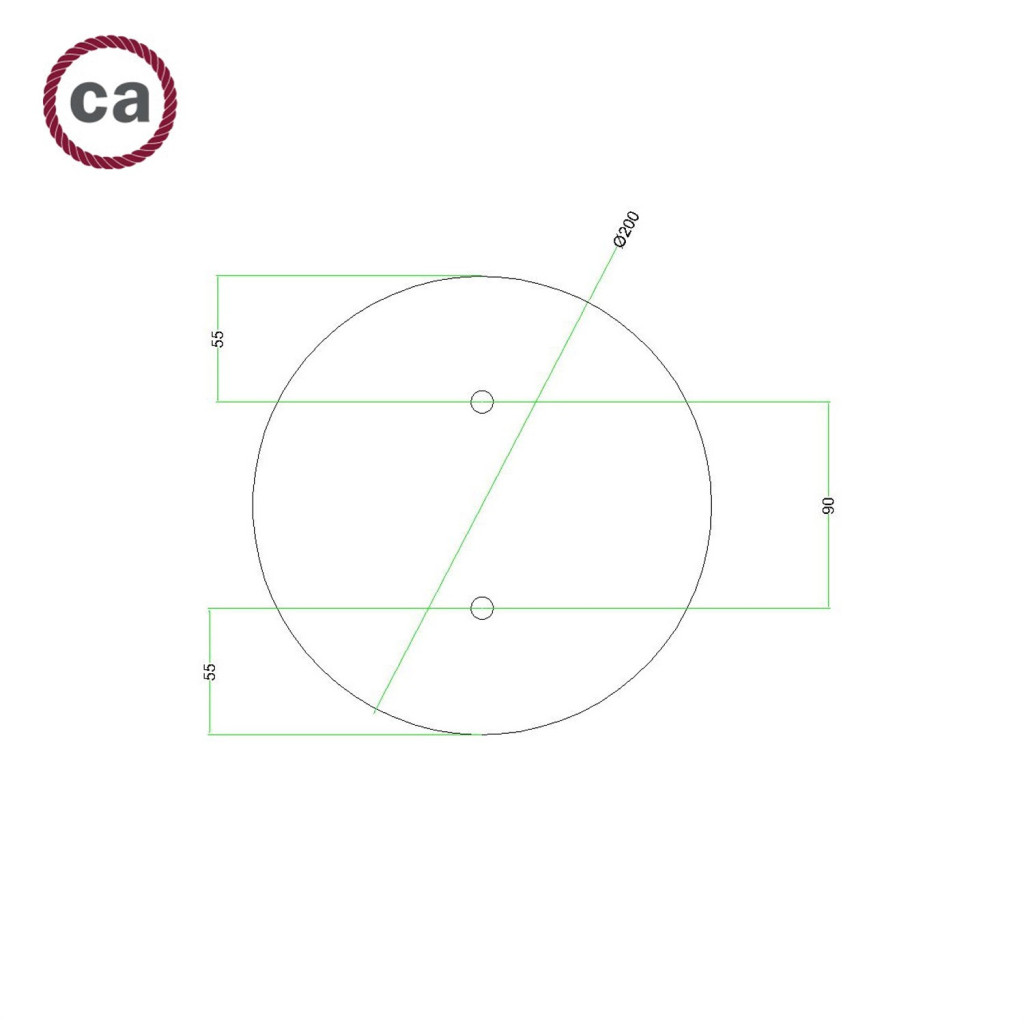 Round ceiling rose – a ceiling rose set with two holes and four side holes, 200 mm