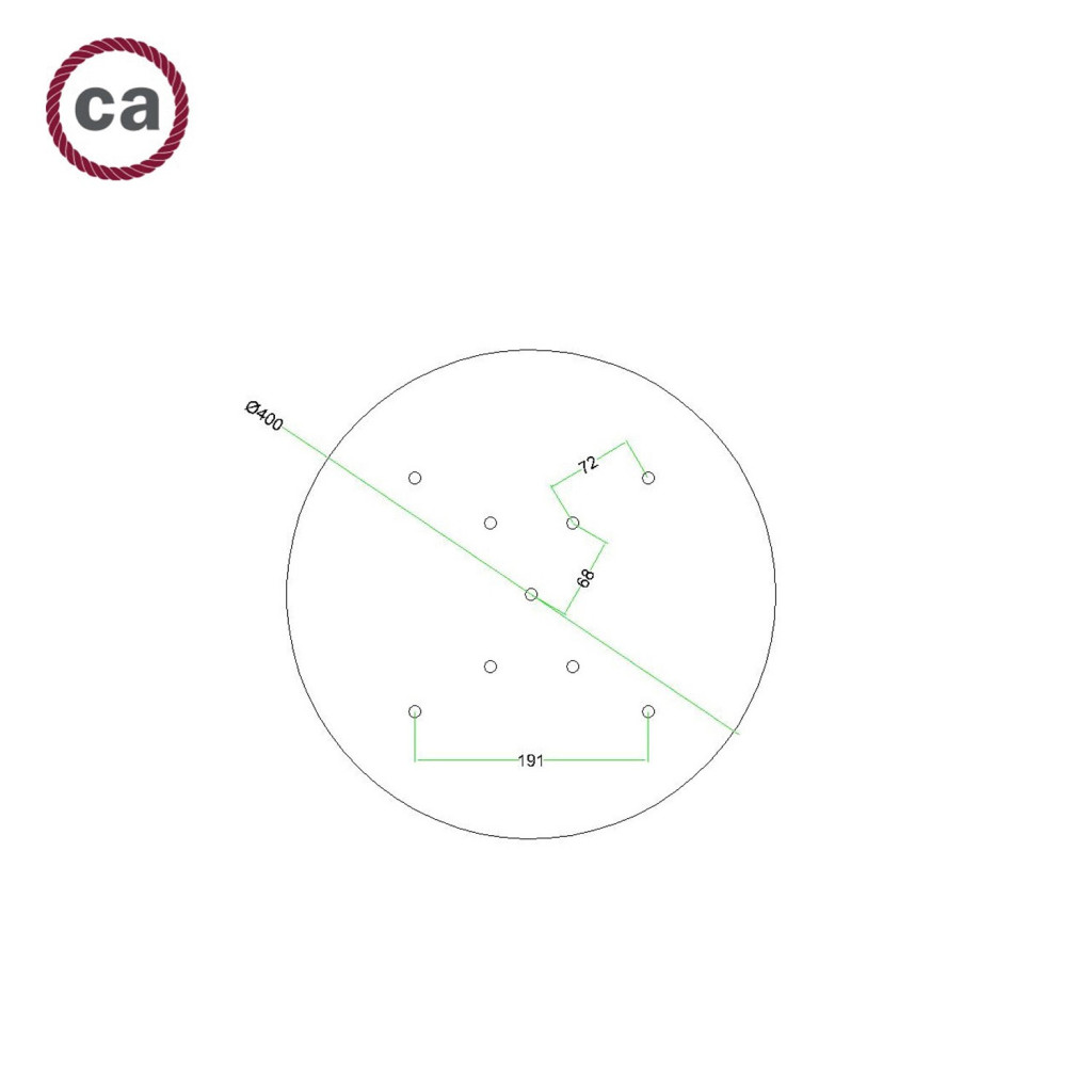 Round XXL Rose-One 9 ceiling rose set with X-shaped hole and 4 side holes, 400 mm