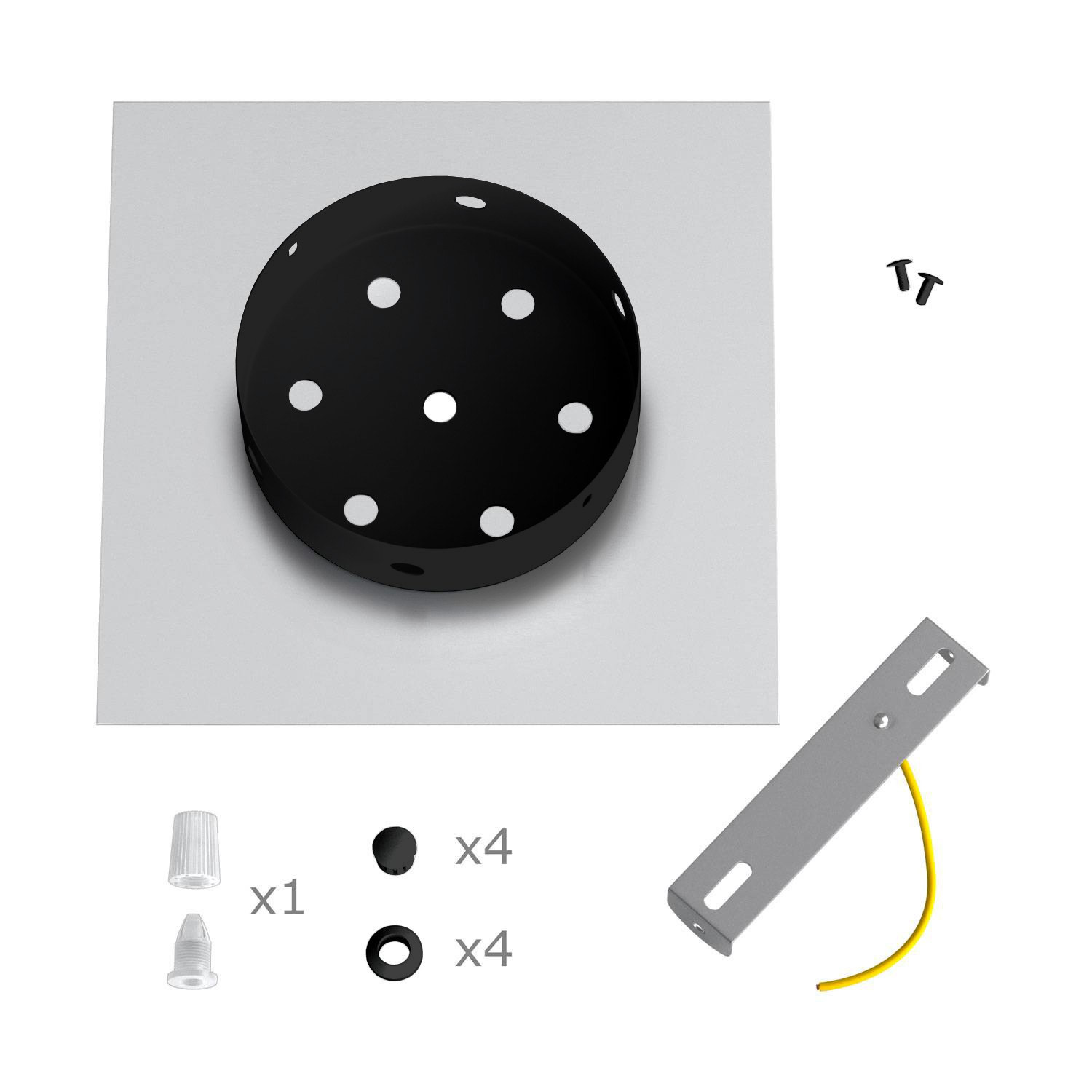 Square rosette – one hole and four side holes, ceiling rosette set, 200 mm