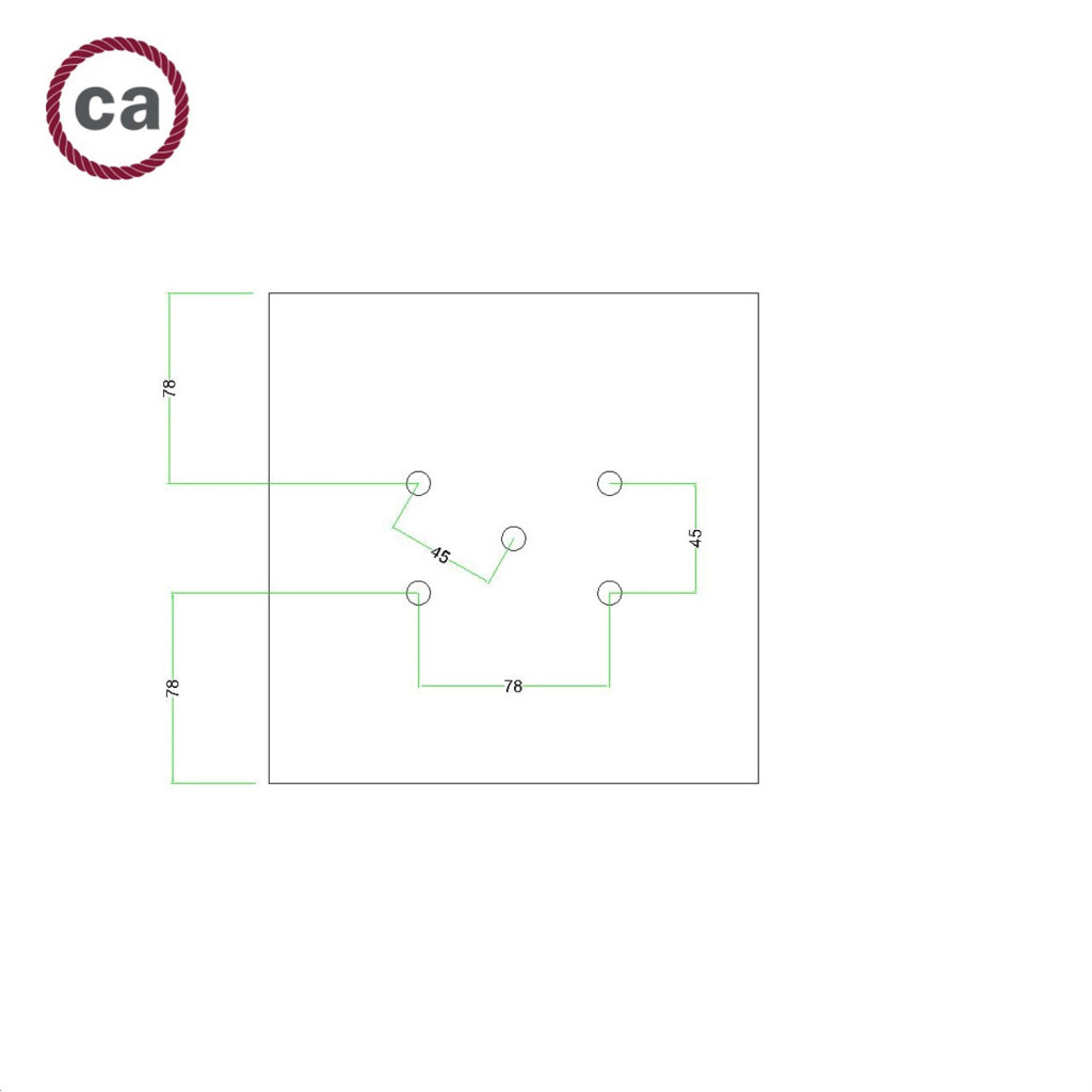 Square ceiling rose – A ceiling rose set with 5 holes and 4 side holes, 200 mm