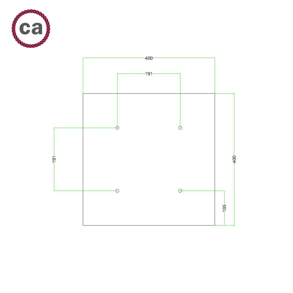 Square XXL Rose-One 4-hole and 4-side hole ceiling rosette set, 400 mm