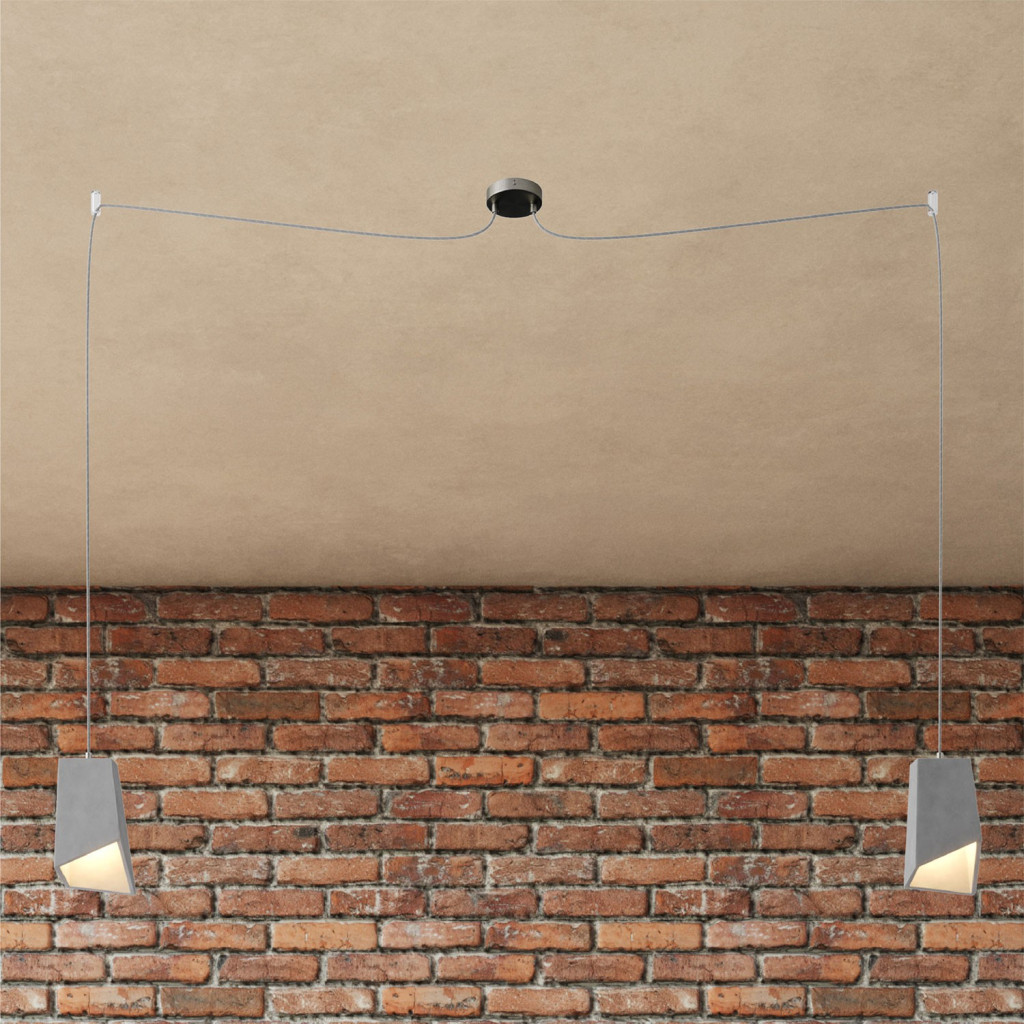 Spider – 2-light multifunctional pendant lamp Made in Italy with fabric cables and concrete lampshade