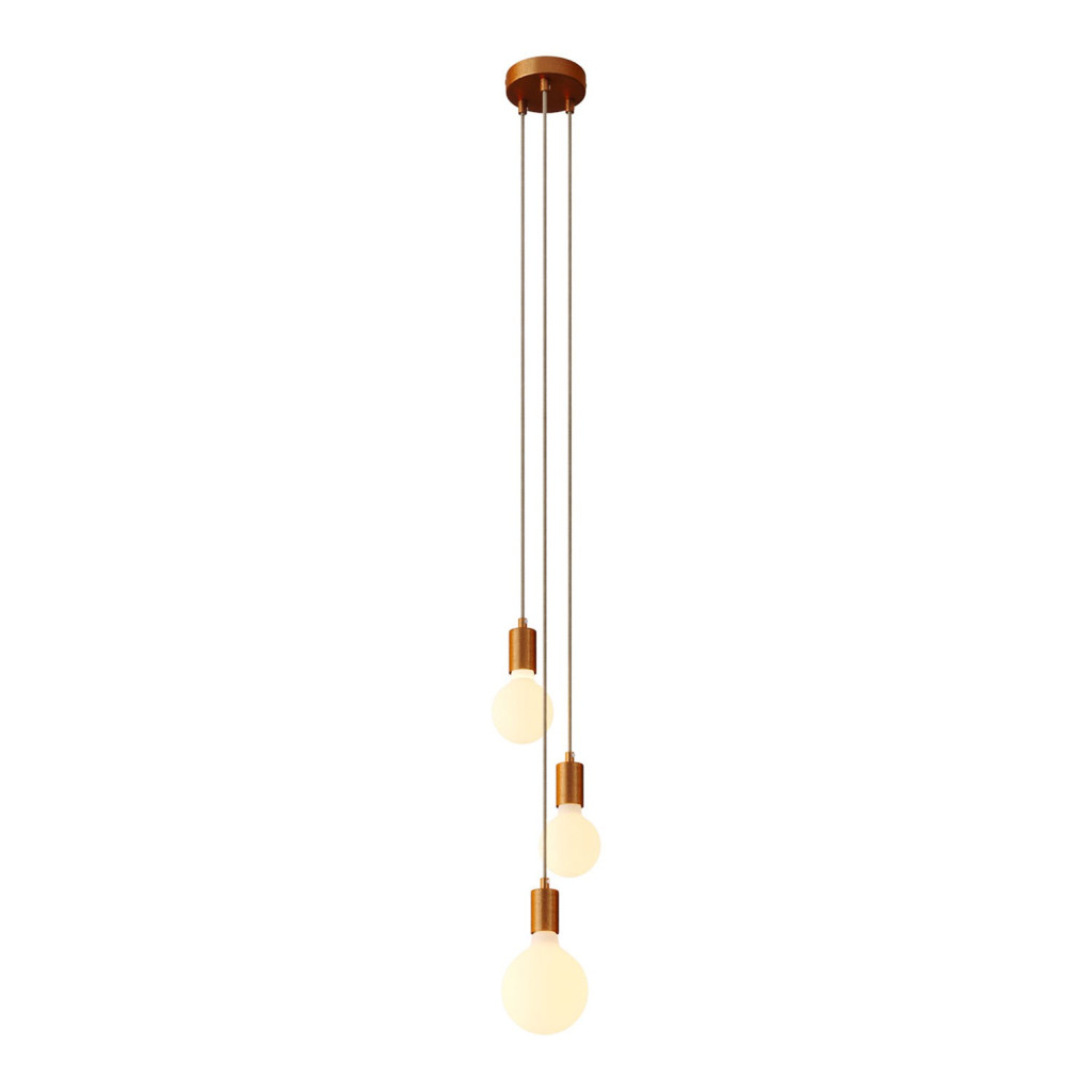 3-light multifunctional pendant lamp with fabric cables and metal surfaces