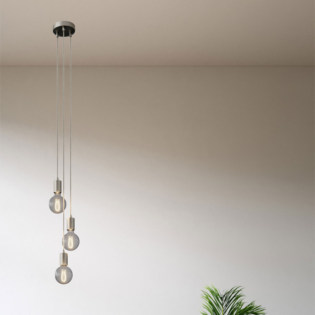 3-light multifunctional pendant lamp with fabric cables and metal surfaces