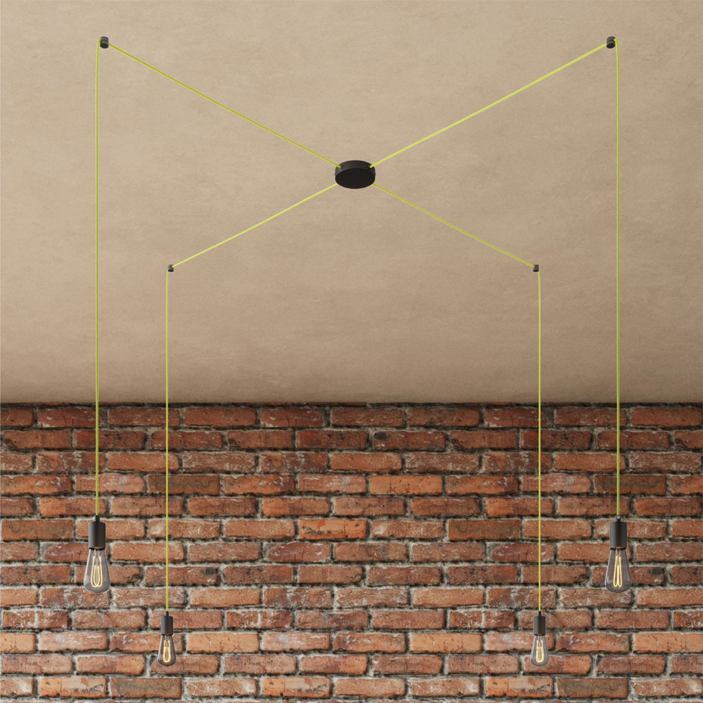 Spider - 4-light multifunctional pendant lamp Made in Italy with fabric cables and metal coating