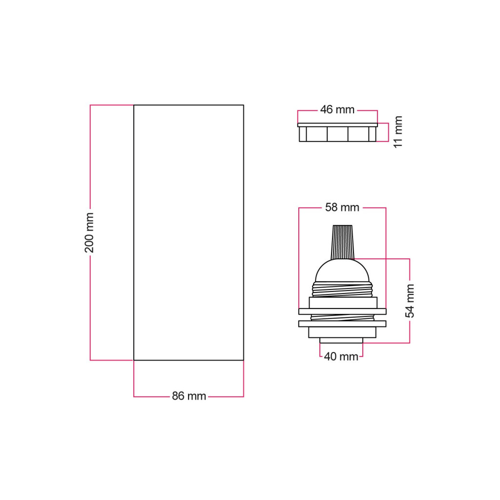 Note: The set includes an E27 thermoplastic lamp socket with a double ring.
