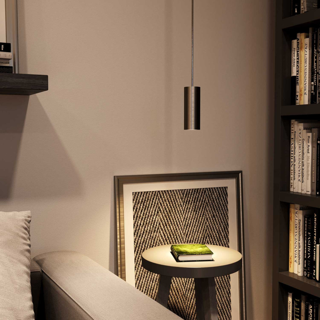 The lampshade spotlight set consists of a metal tube and an E14 double-sleeve thermoplastic lamp holder with a cable clamp. Ideal for creating a pendant lamp when combined with your favorite fabric cable (not included) and ceiling rose.