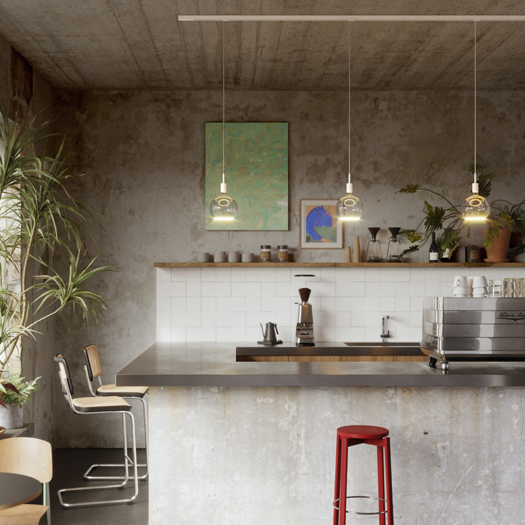 Stucchi suspension adapter, model 9409-4, for three-phase rails, in white/black.