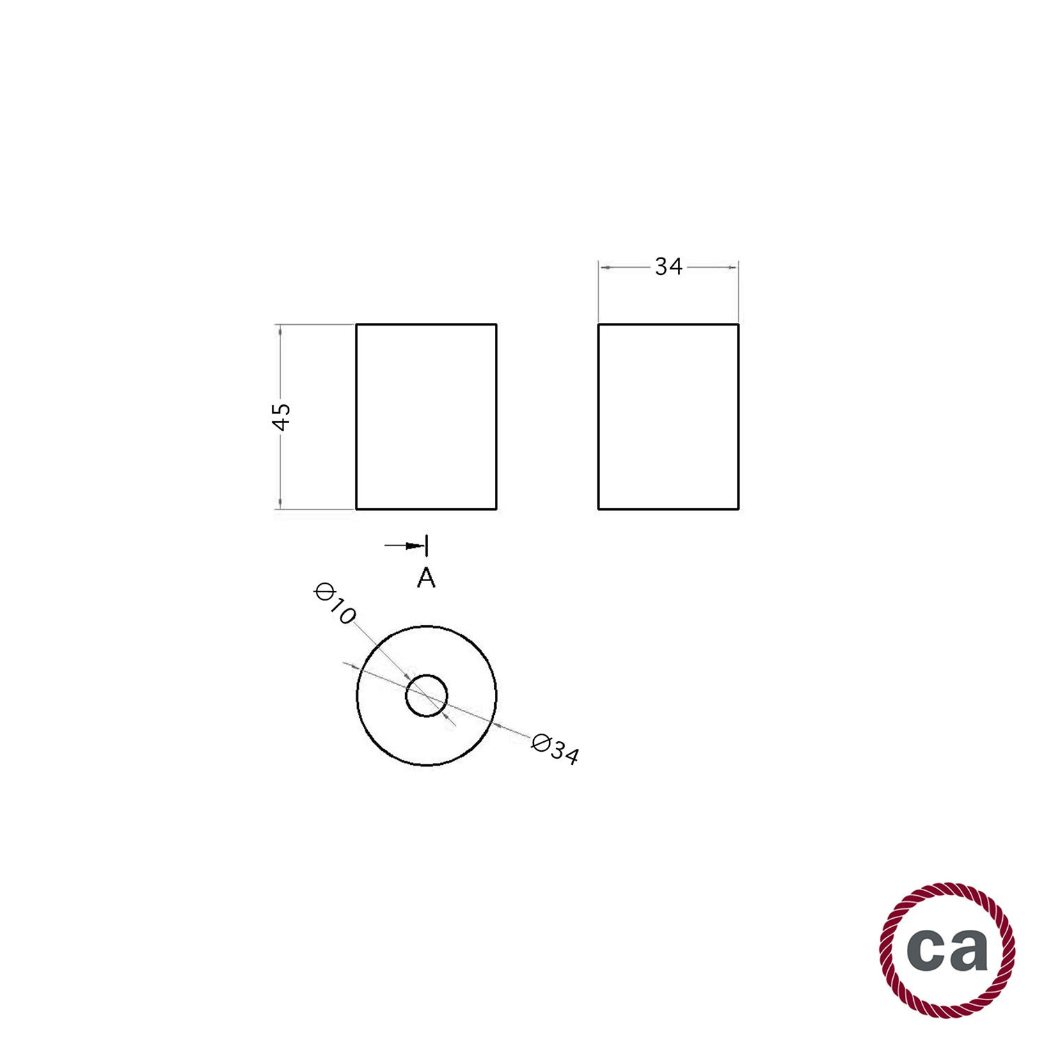 Wooden end cap, compatible with 2XL 2x0.75 twisted wires. Dimensions: H 45 mm, Ø 34 mm. Upper hole size: Ø 10 mm. Lower hole size: Ø 24 mm. Lower hole size: Ø 24 mm..