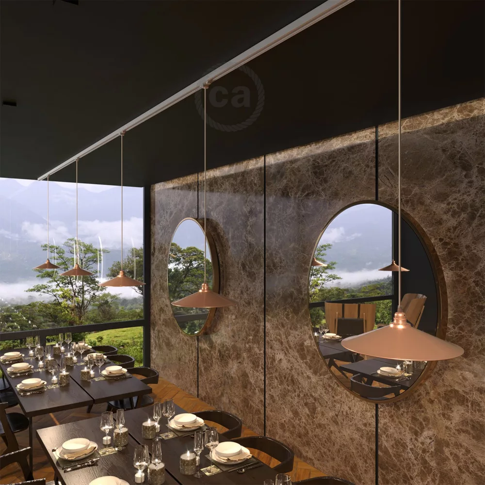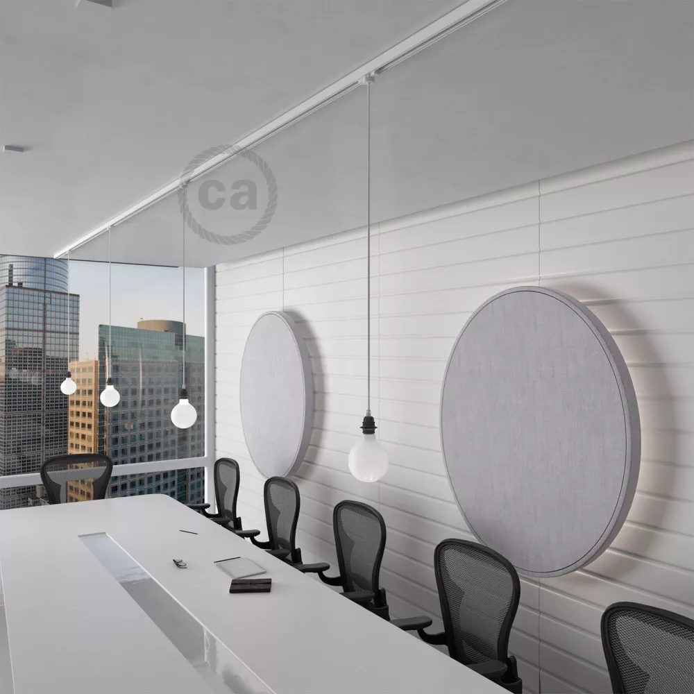 Electric rails offer a minimalist and elegant lighting solution: you can enhance this multi-adapter with suspended lamps made from our fabric cables, which can be placed and installed anywhere you want.