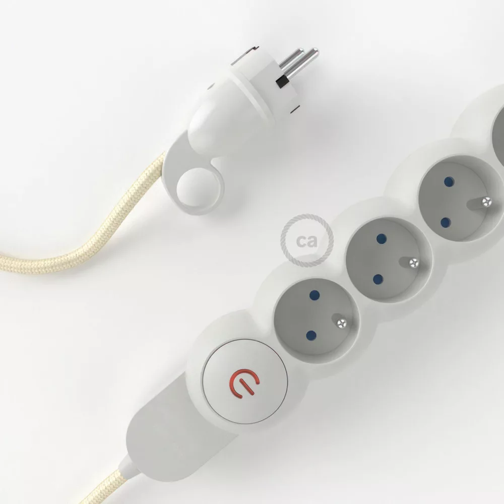 The RM00 Creative-Cables power strip with Ivory fabric-covered electrical cables is not your usual multiple socket!