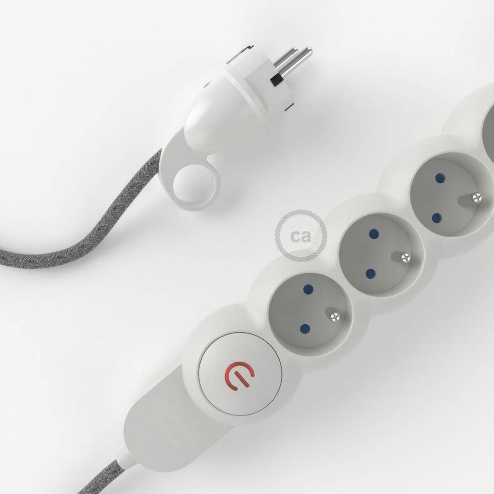 Power distributor with 4 Schuko plugs 2P+T 250V 16A / European 2P 10A and two-pole switch with indicator light.