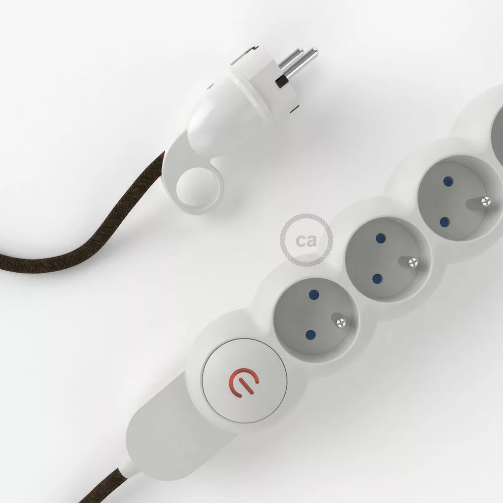 French Power Strip brown Natural Linen RN04 covered with electrical cable and Schuko plug with comfort ring
