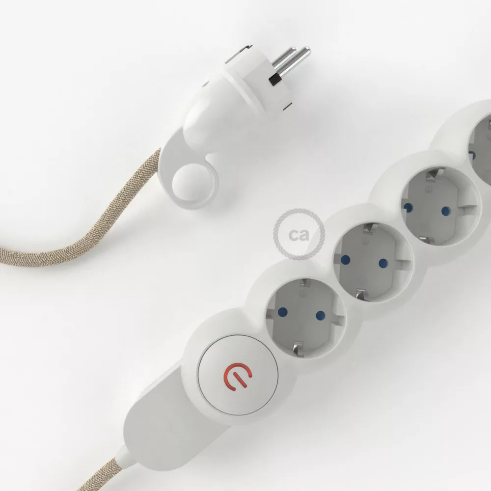 German Power Strip with electrical cable covered with Neutral Natural Linen RN01 material and Schuko plug with comfort ring