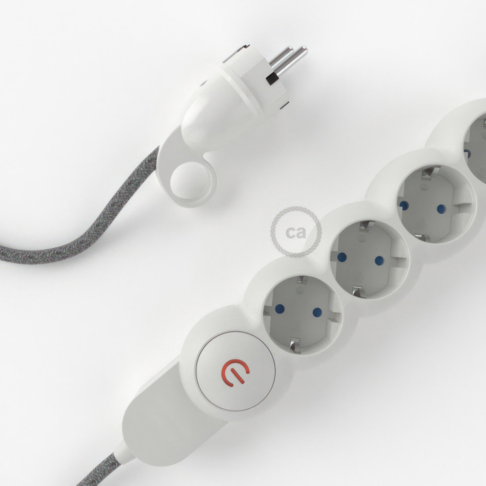 Power distributor with 4 Schuko plugs 2P+T 250V 16A / European 2P 10A and two-pole switch with indicator light.