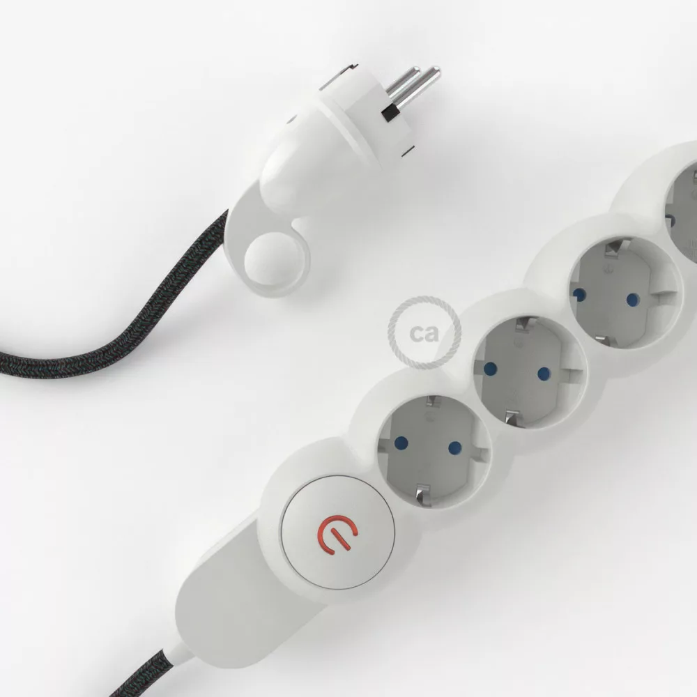 The 4 Schuko/10A sockets are positioned diagonally to optimize the space occupied by the transformers. The large cross-section cable (1.5 mm²) is 100% made in Italy.