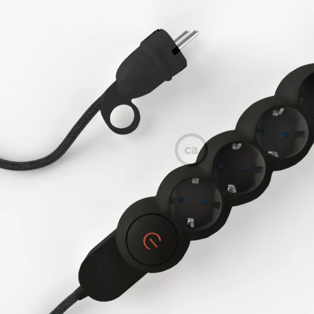 The anthracite Natural Linen RN03 Creative-Cables covered electrical cable distribution box is not your usual multiple socket!