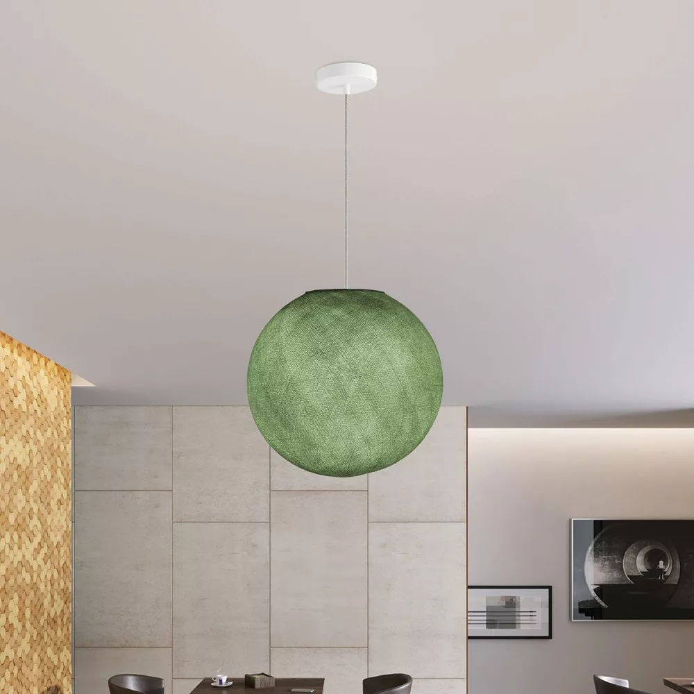 SPHERE LAMP SHADE MADE OF WOVEN FABRIC - 100% HANDMADE OLIVE GREEN POLYESTER