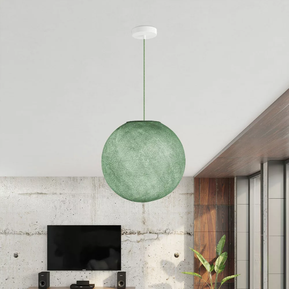 SPHERE LAMP SHADE MADE OF WOVEN FABRIC - 100% HANDMADE MILK GREEN POLYESTER