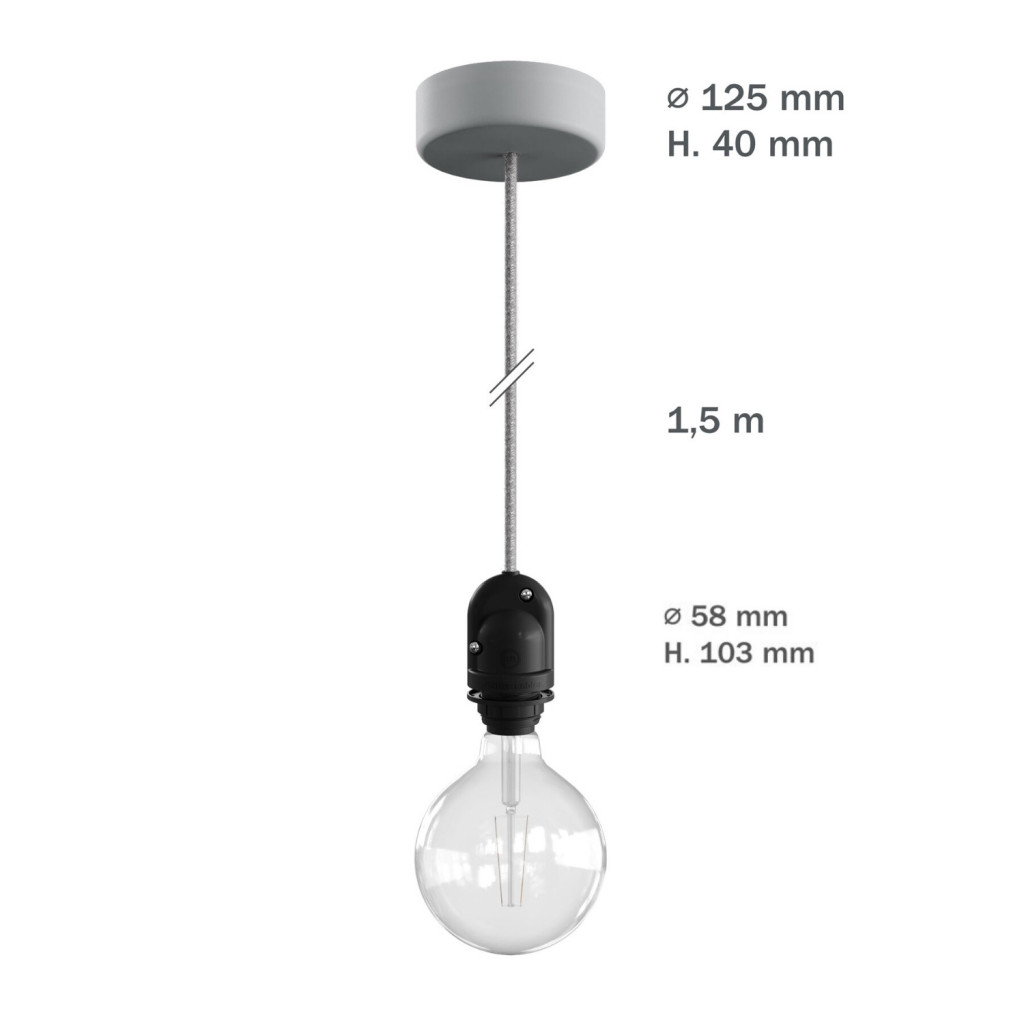 Modular outdoor pendant lamp for lampshades, with 1.5 m cable, silicone ceiling rose and IP65 waterproof lamp holder