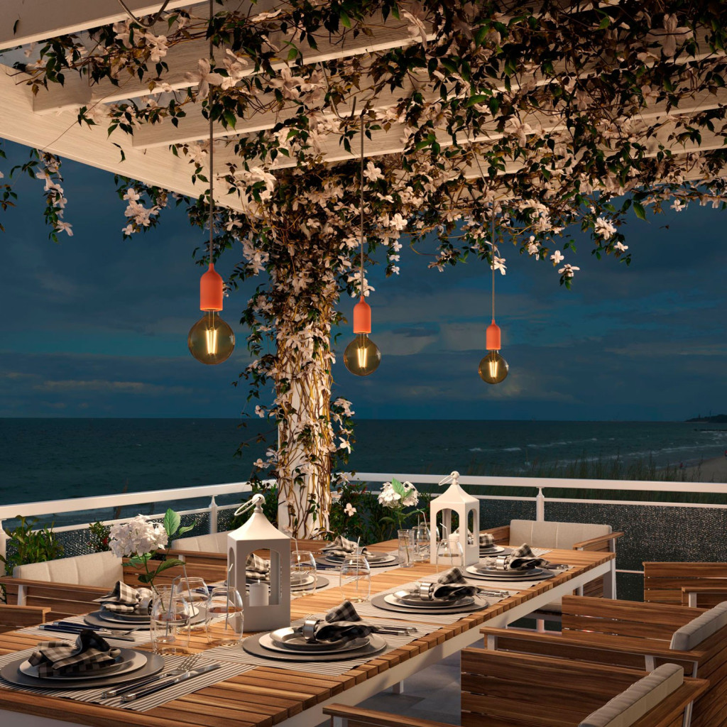 Modular PASTEL outdoor pendant lamp with 5-meter textile cable, decentralizer, ceiling rosette and lamp holder IP65 waterproof