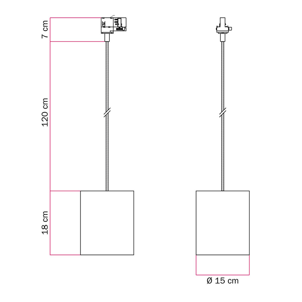 Track-mounted pendant lamp with textile cable and raffia Cilindro lampshade