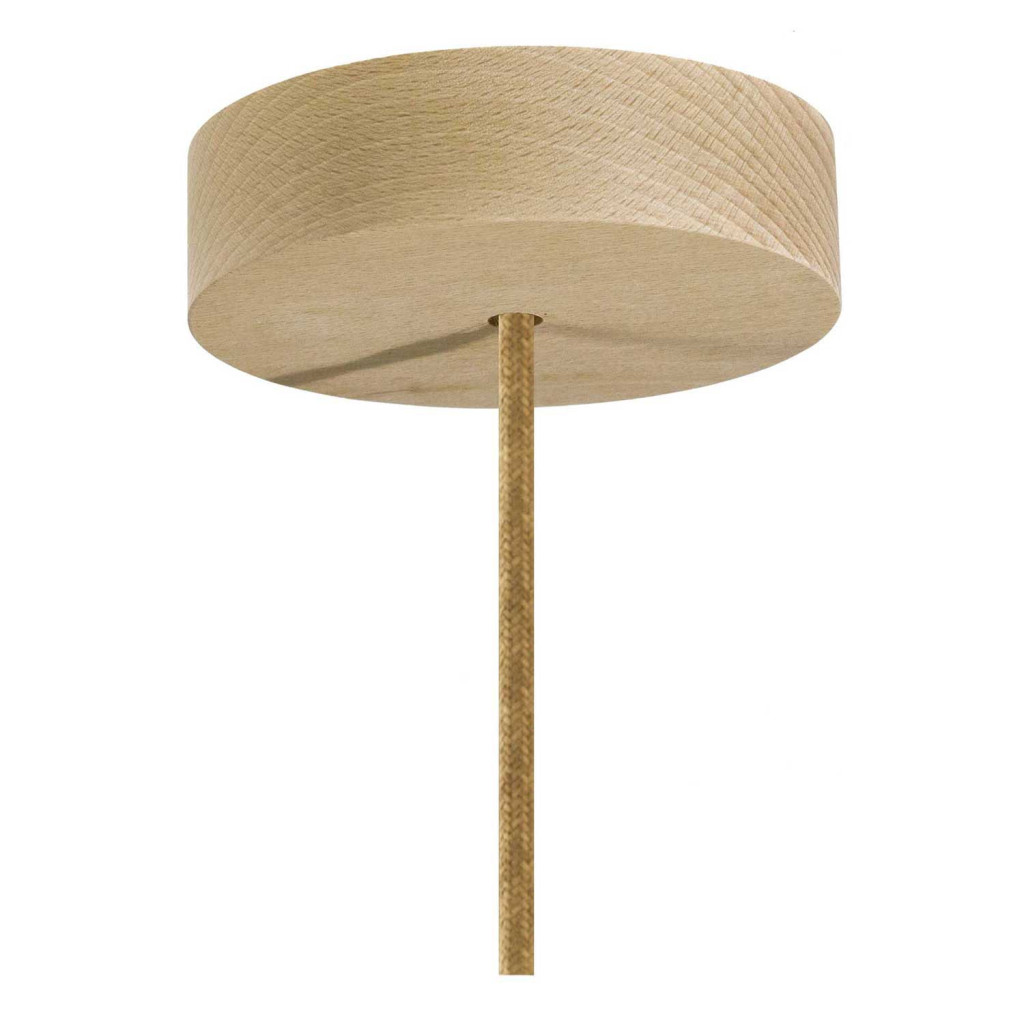 Suspended lamp with textile cable, raffia cylindrical lampshade and metal decoration - Made in Italy - Bulb included