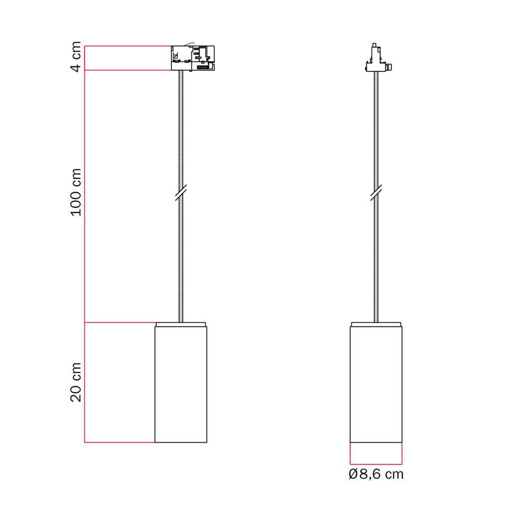 Track-mounted pendant lamp with textile cable and Tub-E27 socket