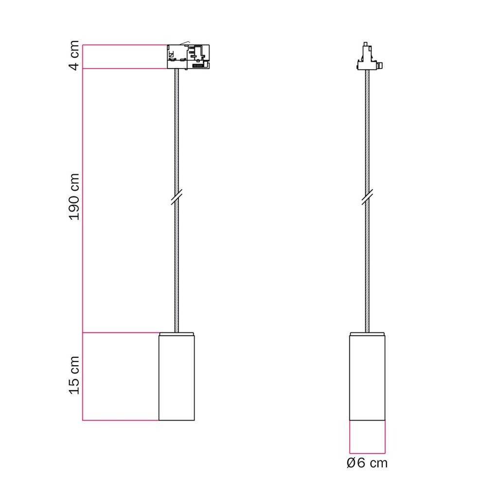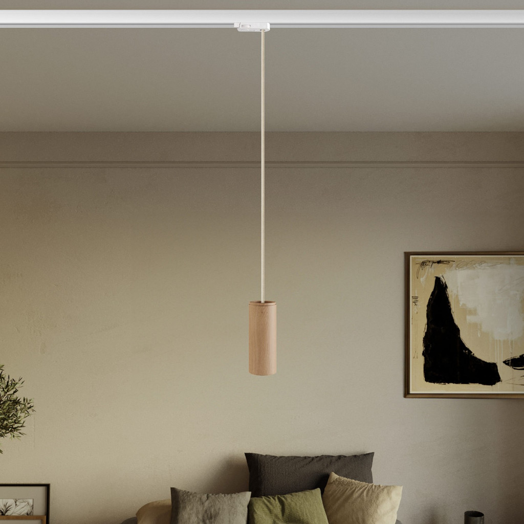 Track-mounted pendant lamp with textile cable and Tub-E14 socket